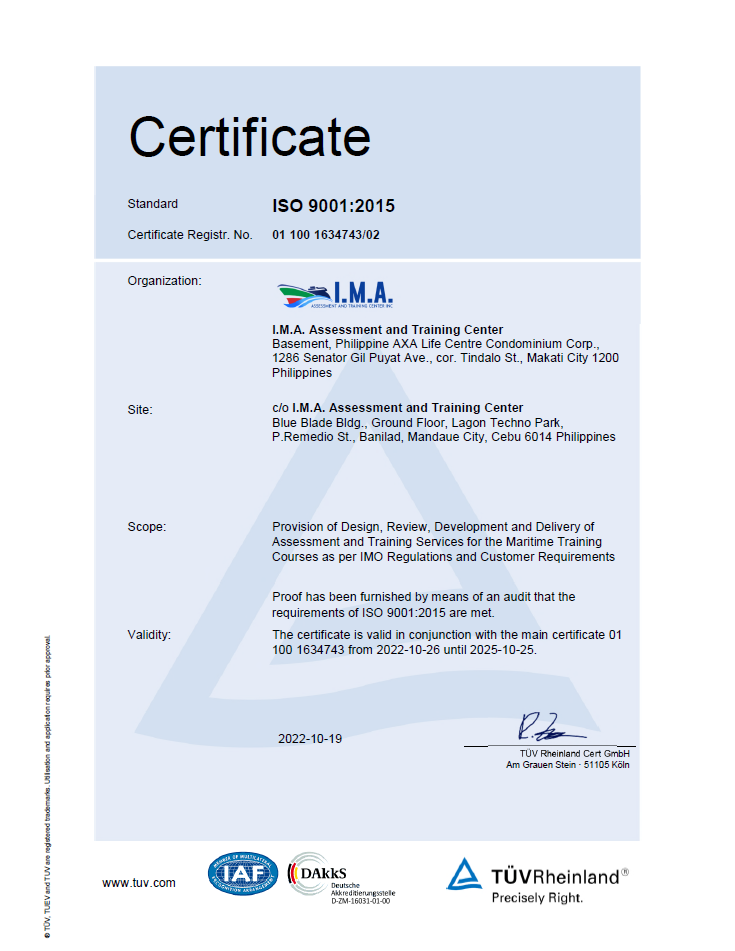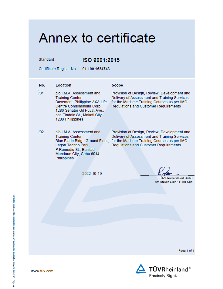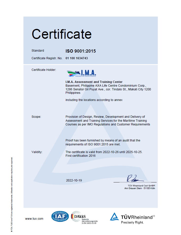 ISO 9001:2015 Certificate Makati (TUV Rheinland)