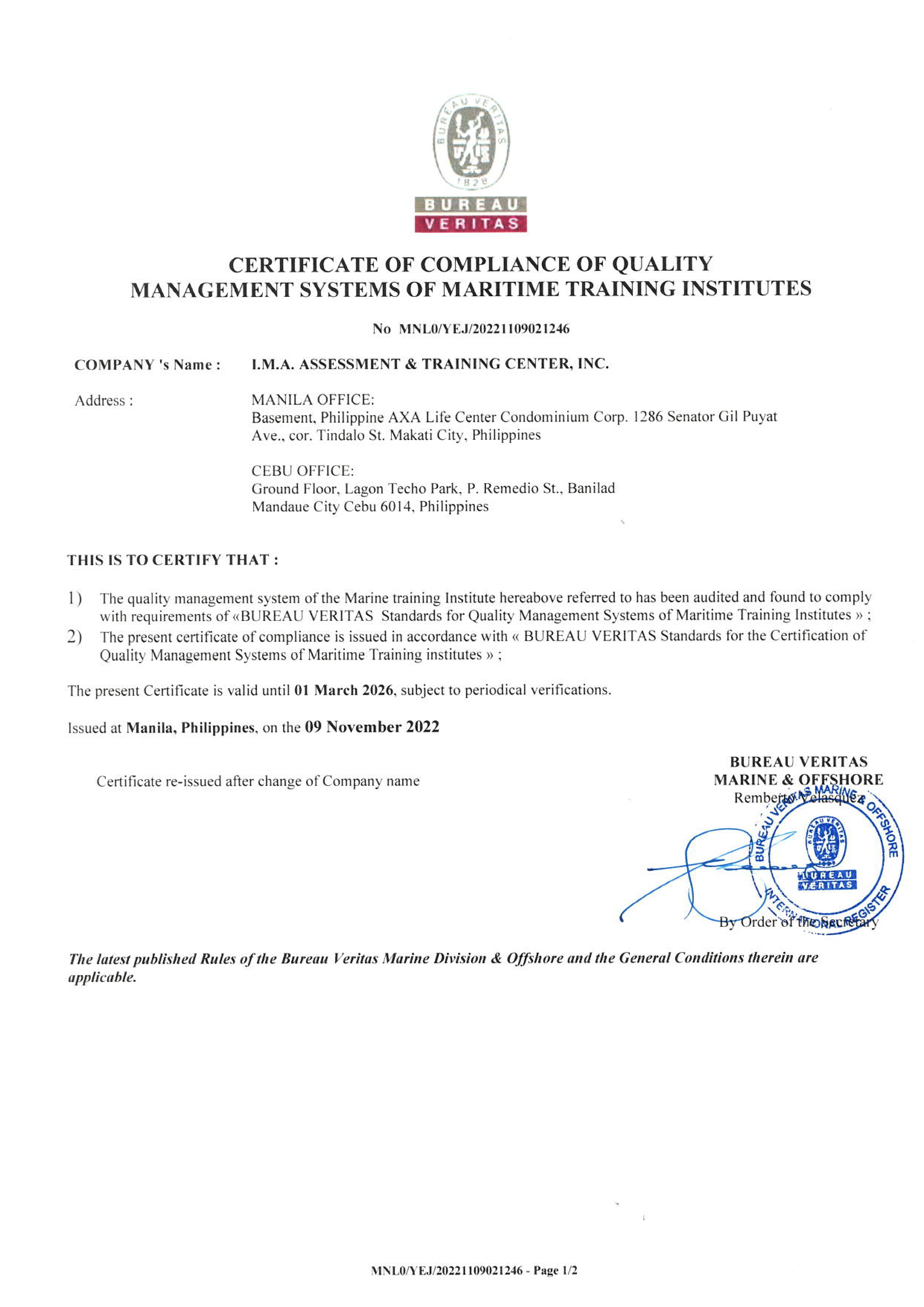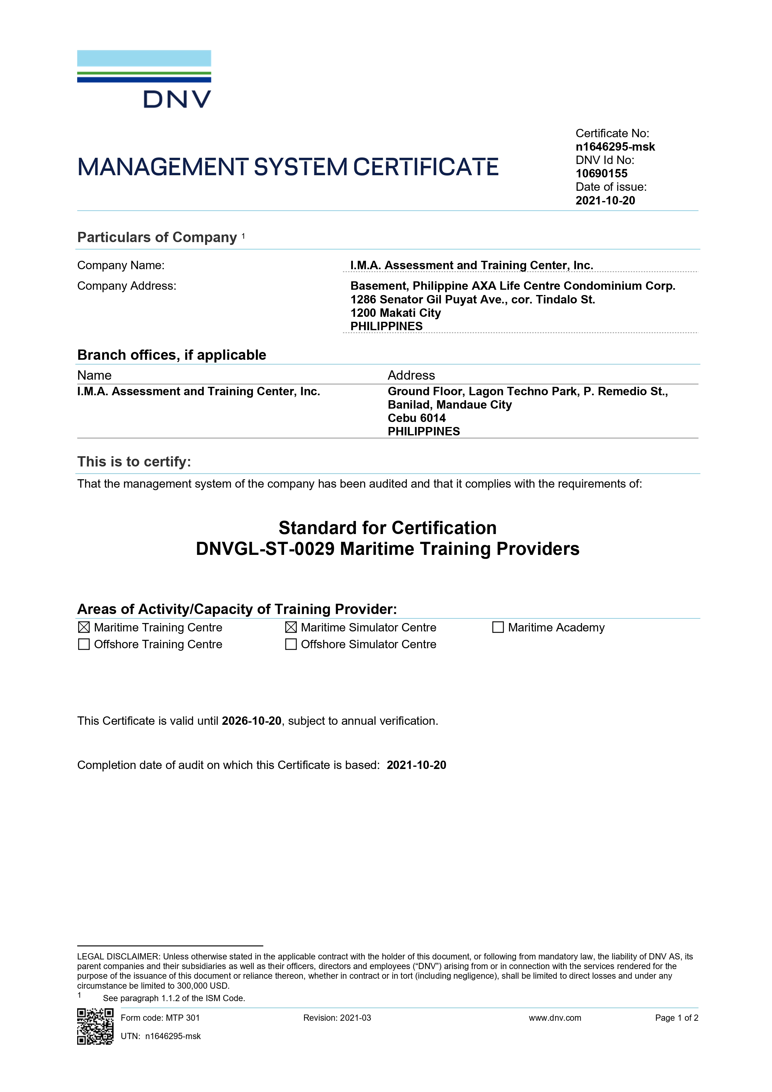 DNV Maritime Training Provider Certificate
