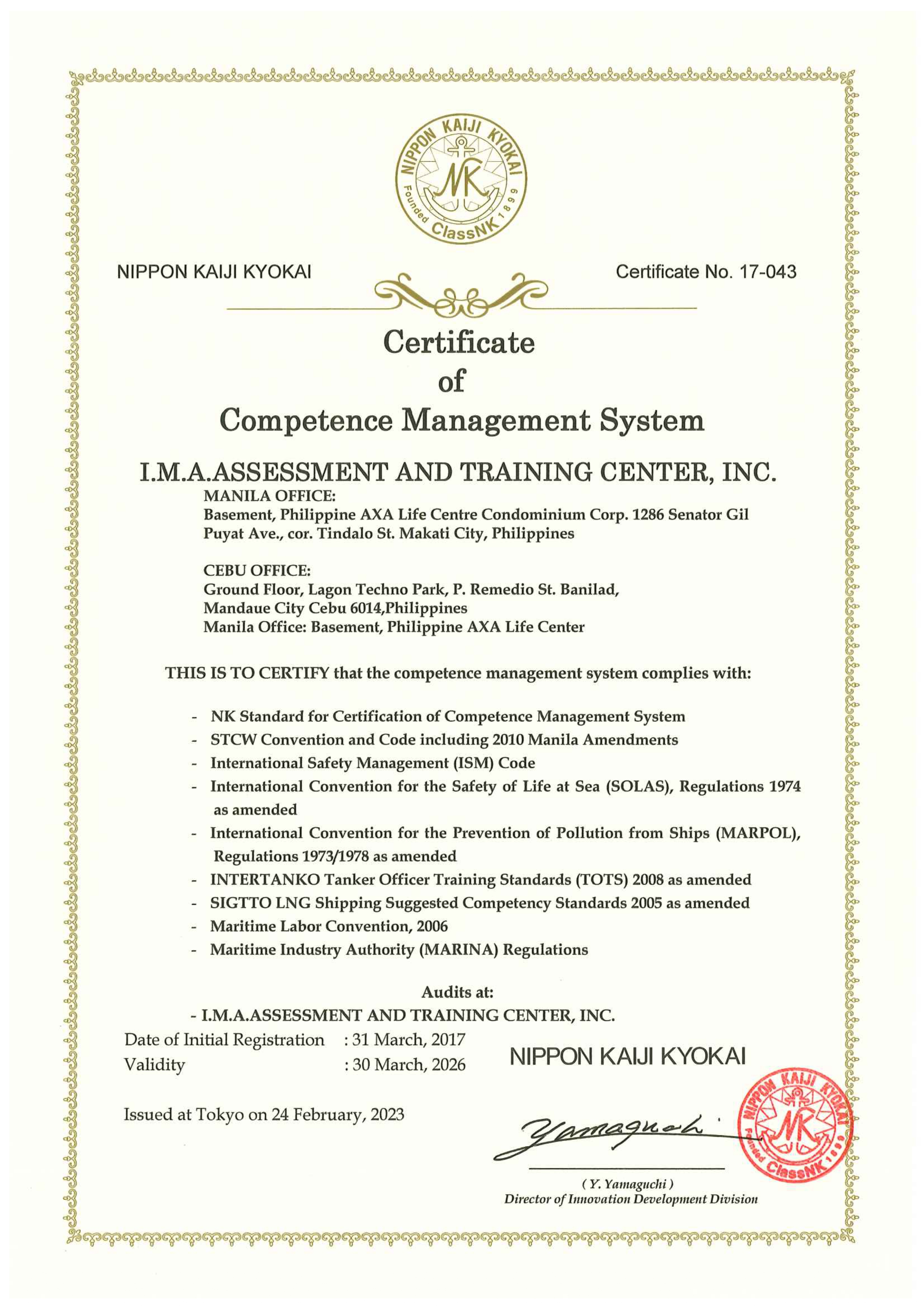 Maritime Training Provider Certificate-ClassNK